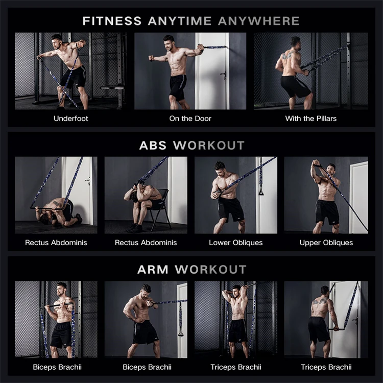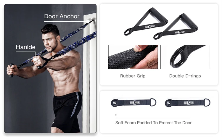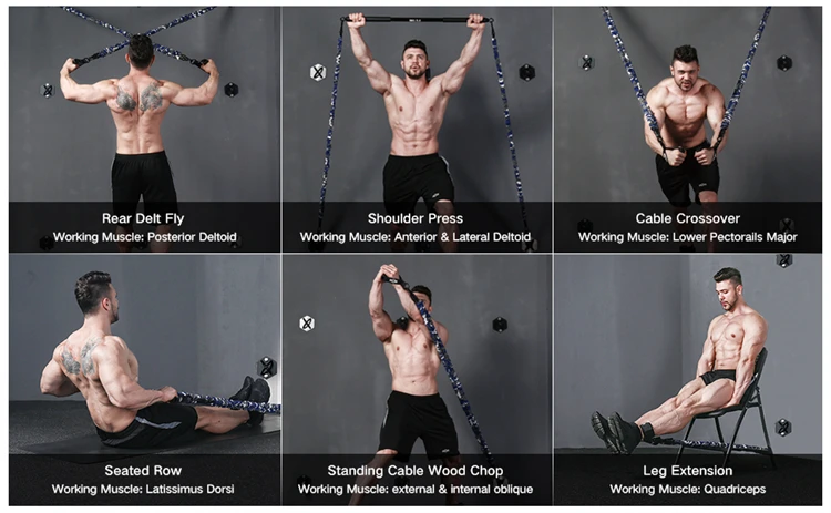 Home Gym Workout Fitness Equipment Set with 6 Resistance Bands and 8 Accessories - Complete Home Fitness Kit